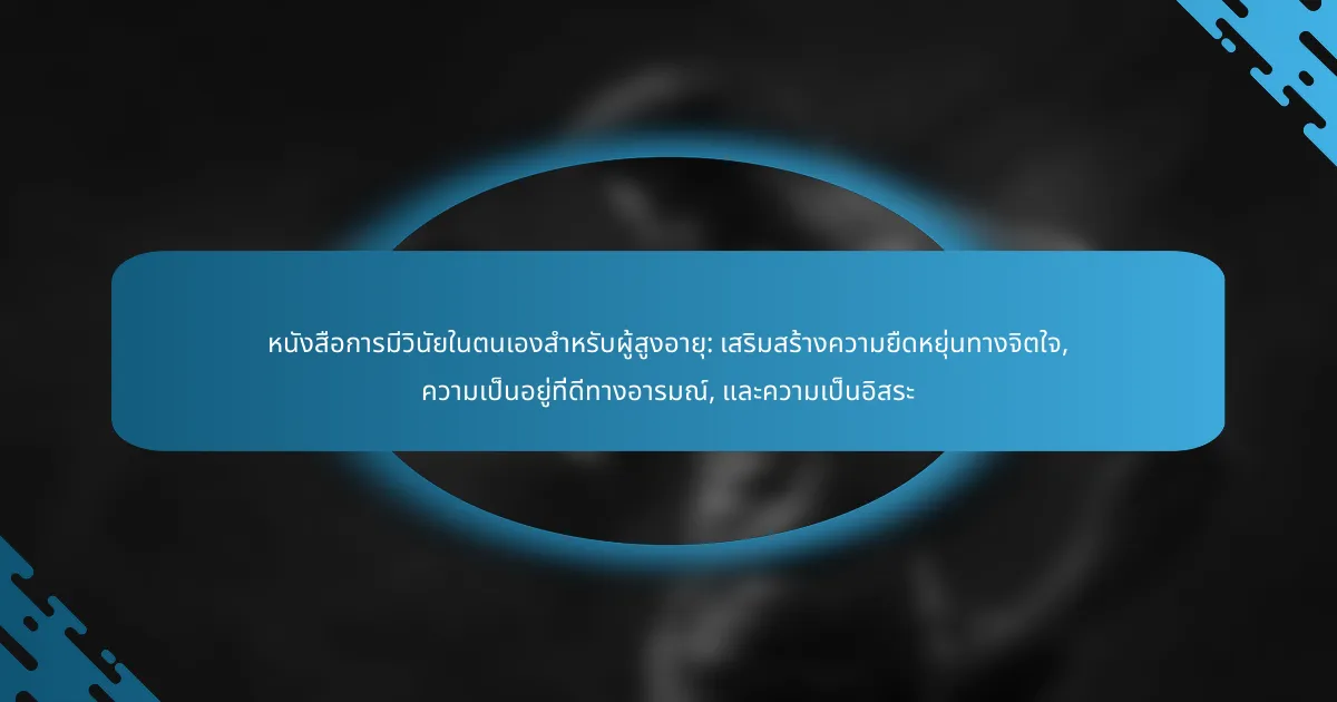 หนังสือเกี่ยวกับการมีวินัยในตนเองสามารถเพิ่มความยืดหยุ่นทางจิตใจและความเป็นอยู่ที่ดีทางอารมณ์สำหรับผู้สูงอายุได้อย่างมีนัยสำคัญ แหล่งข้อมูลเหล่านี้ให้กลยุทธ์ที่เป็นประโยชน์สำหรับการตั้งเป้าหมาย การมีสติ และการควบคุมอารมณ์ การมีส่วนร่วมกับวรรณกรรมเกี่ยวกับการมีวินัยในตนเองช่วยส่งเสริมการทำงานของสมองและความเป็นอิสระ ชื่อที่แนะนำ ได้แก่ “Atomic Habits,” “The Power of Habit,” และ “Mindset” ซึ่งแต่ละเล่มเสนอข้อมูลเชิงลึกที่ปรับให้เหมาะกับผู้สูงอายุ หนังสือเกี่ยวกับการมีวินัยในตนเองสามารถเพิ่มความยืดหยุ่นทางจิตใจในผู้สูงอายุได้อย่างไร? หนังสือเกี่ยวกับการมีวินัยในตนเองสามารถเพิ่มความยืดหยุ่นทางจิตใจในผู้สูงอายุได้อย่างมีนัยสำคัญโดยการให้กลยุทธ์ที่มีโครงสร้างสำหรับการรับมือกับความท้าทาย หนังสือเหล่านี้มักเน้นการตั้งเป้าหมาย การมีสติ และการควบคุมอารมณ์ ซึ่งเป็นองค์ประกอบสำคัญที่ช่วยส่งเสริมความเป็นอิสระและความเป็นอยู่ที่ดีทางอารมณ์ งานวิจัยระบุว่าผู้สูงอายุที่มีส่วนร่วมกับวรรณกรรมเกี่ยวกับการมีวินัยในตนเองรายงานว่ามีความชัดเจนทางจิตใจที่ดีขึ้นและระดับความวิตกกังวลที่ลดลง นอกจากนี้ แหล่งข้อมูลเหล่านี้ยังสามารถกระตุ้นการมีส่วนร่วมทางปัญญา ส่งเสริมการเรียนรู้ตลอดชีวิตและความสามารถในการปรับตัว ด้วยเหตุนี้ ผู้สูงอายุจึงได้รับเครื่องมือในการนำทางการเปลี่ยนแปลงในชีวิตได้อย่างมีประสิทธิภาพมากขึ้น ส่งผลให้มีชีวิตที่เติมเต็มและมีความยืดหยุ่นมากขึ้น ธีมหลักในวรรณกรรมเกี่ยวกับการมีวินัยในตนเองสำหรับผู้สูงอายุคืออะไร? วรรณกรรมเกี่ยวกับการมีวินัยในตนเองสำหรับผู้สูงอายุเน้นธีมของความยืดหยุ่นทางจิตใจ ความเป็นอยู่ที่ดีทางอารมณ์ และความเป็นอิสระ ธีมหลัก ได้แก่ ความสำคัญของกิจวัตร การตั้งเป้าหมาย กลยุทธ์การรับมือ และบทบาทของการมีสติ กิจวัตรช่วยสร้างความสม่ำเสมอ ส่งเสริมความรู้สึกควบคุม การตั้งเป้าหมายช่วยกระตุ้นแรงจูงใจและให้ทิศทาง กลยุทธ์การรับมือช่วยเสริมการควบคุมอารมณ์ ทำให้ผู้สูงอายุสามารถรับมือกับความท้าทายได้อย่างมีประสิทธิภาพ การมีสติช่วยส่งเสริมการตระหนักรู้ ลดความเครียดและปรับปรุงสุขภาพจิตโดยรวม ธีมเหล่านี้ช่วยสนับสนุนผู้สูงอายุในการเสริมสร้างการมีวินัยในตนเอง ส่งผลให้คุณภาพชีวิตดีขึ้นและมีความเป็นอิสระมากขึ้น เทคนิคการมีวินัยในตนเองช่วยปรับปรุงความเป็นอยู่ทางอารมณ์ได้อย่างไร? เทคนิคการมีวินัยในตนเองช่วยเพิ่มความเป็นอยู่ทางอารมณ์อย่างมีนัยส