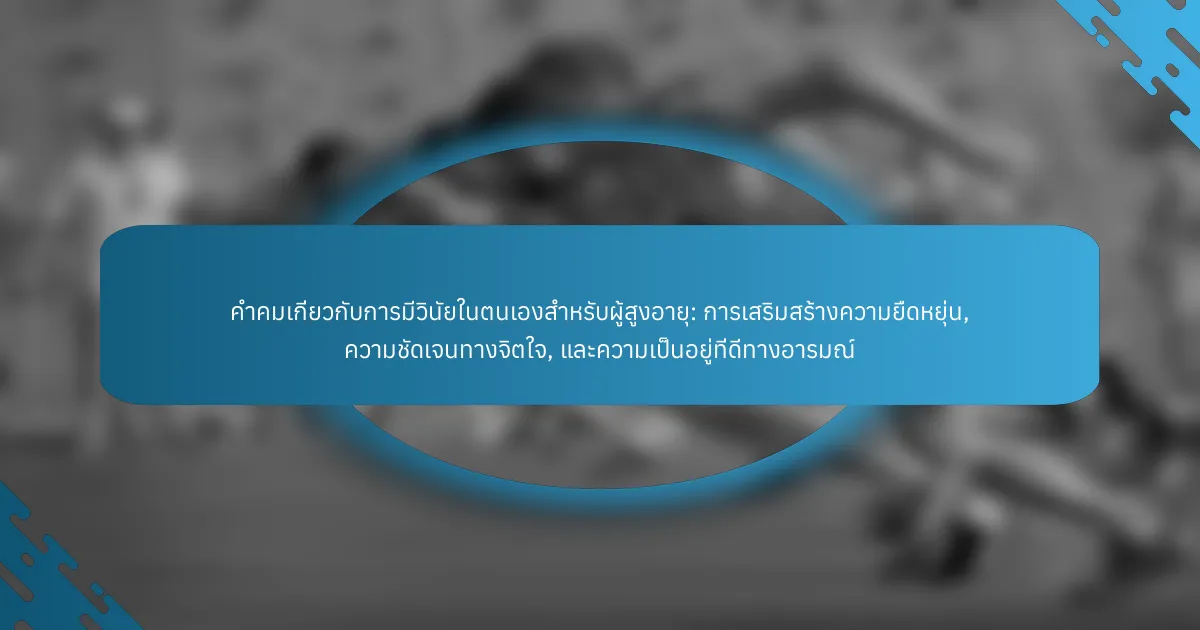 คำคมเกี่ยวกับการมีวินัยในตนเองสามารถเพิ่มความยืดหยุ่น ความชัดเจนทางจิตใจ และความเป็นอยู่ที่ดีทางอารมณ์สำหรับผู้สูงอายุได้อย่างมีนัยสำคัญ คำคมเหล่านี้ทำหน้าที่เป็นการเตือนใจที่สร้างแรงบันดาลใจ ส่งเสริมพฤติกรรมเชิงบวกและรูปแบบความคิด การนำคำคมเหล่านี้เข้ามาในกิจวัตรประจำวันช่วยส่งเสริมการสะท้อนตนเองและการเติบโตส่วนบุคคล การมีส่วนร่วมกับคำคมเหล่านี้เป็นประจำสามารถปรับปรุงกลยุทธ์การรับมือและเสริมสร้างการเชื่อมต่อทางสังคม ซึ่งท้ายที่สุดจะช่วยเพิ่มคุณภาพชีวิตสำหรับผู้สูงอายุ คำคมเกี่ยวกับการมีวินัยในตนเองช่วยเพิ่มสุขภาพจิตสำหรับผู้สูงอายุได้อย่างไร? คำคมเกี่ยวกับการมีวินัยในตนเองช่วยเพิ่มสุขภาพจิตสำหรับผู้สูงอายุโดยการส่งเสริมความยืดหยุ่น การส่งเสริมความชัดเจนทางจิตใจ และการปรับปรุงความเป็นอยู่ที่ดีทางอารมณ์ คำคมเหล่านี้ทำหน้าที่เป็นการเตือนใจประจำวัน ส่งเสริมพฤติกรรมเชิงบวกและรูปแบบความคิด การวิจัยชี้ให้เห็นว่าการยืนยันเชิงบวกสามารถลดระดับความวิตกกังวลและภาวะซึมเศร้า ซึ่งส่งผลให้เกิดสภาวะจิตใจที่มีเสถียรภาพมากขึ้น นอกจากนี้ คำคมเกี่ยวกับการมีวินัยในตนเองยังสามารถกระตุ้นให้ผู้สูงอายุมีส่วนร่วมในกิจวัตรที่ดีต่อสุขภาพ ซึ่งสนับสนุนสุขภาพจิตได้มากยิ่งขึ้น คุณสมบัติที่เป็นเอกลักษณ์ของคำคมเหล่านี้อยู่ที่ความสามารถในการสร้างแรงบันดาลใจให้เกิดการสะท้อนตนเองและการเติบโตส่วนบุคคล ซึ่งเป็นสิ่งสำคัญสำหรับการรักษาสุขภาพจิตในช่วงชีวิตที่มากขึ้น ประโยชน์หลักของการมีวินัยในตนเองสำหรับผู้สูงอายุคืออะไร? การมีวินัยในตนเองช่วยเพิ่มคุณภาพชีวิตของผู้สูงอายุอย่างมีนัยสำคัญโดยการส่งเสริมความยืดหยุ่น ความชัดเจนทางจิตใจ และความเป็นอยู่ที่ดีทางอารมณ์ มันทำให้พวกเขาสามารถตั้งเป้าหมายส่วนบุคคลและบรรลุเป้าหมายเหล่านั้น ซึ่งนำไปสู่ความรู้สึกของความสำเร็จ ความมุ่งมั่นและการตัดสินใจที่ดีขึ้นเกิดจากความชัดเจนทางจิตใจที่ดีขึ้น ช่วยให้ผู้สูงอายุสามารถจัดการกับความท้าทายในชีวิตประจำวันได้อย่างมีประสิทธิภาพ นอกจากนี้ การมีวินัยในตนเองยังช่วยเสริมสร้างความมั่นคงทางอารมณ์ ลดความเครียดและส่งเสริมมุมมองเชิงบวก โดยการปลูกฝังประโยชน์เหล่านี้ ผู้สูงอายุสามารถมีชีวิตที่เต็มเปี่ยมและเป็นอิสระมากขึ้น การมีวินัยในตนเองช่วยเสริมสร้างความยืดหยุ่นได้อย่างไร? การมีวินัยในตนเองช่วยเสริมสร้างความยืดหยุ่นอย่างมีนัยสำคัญโดยการส่งเสริมความชัดเจนทางจิตใ